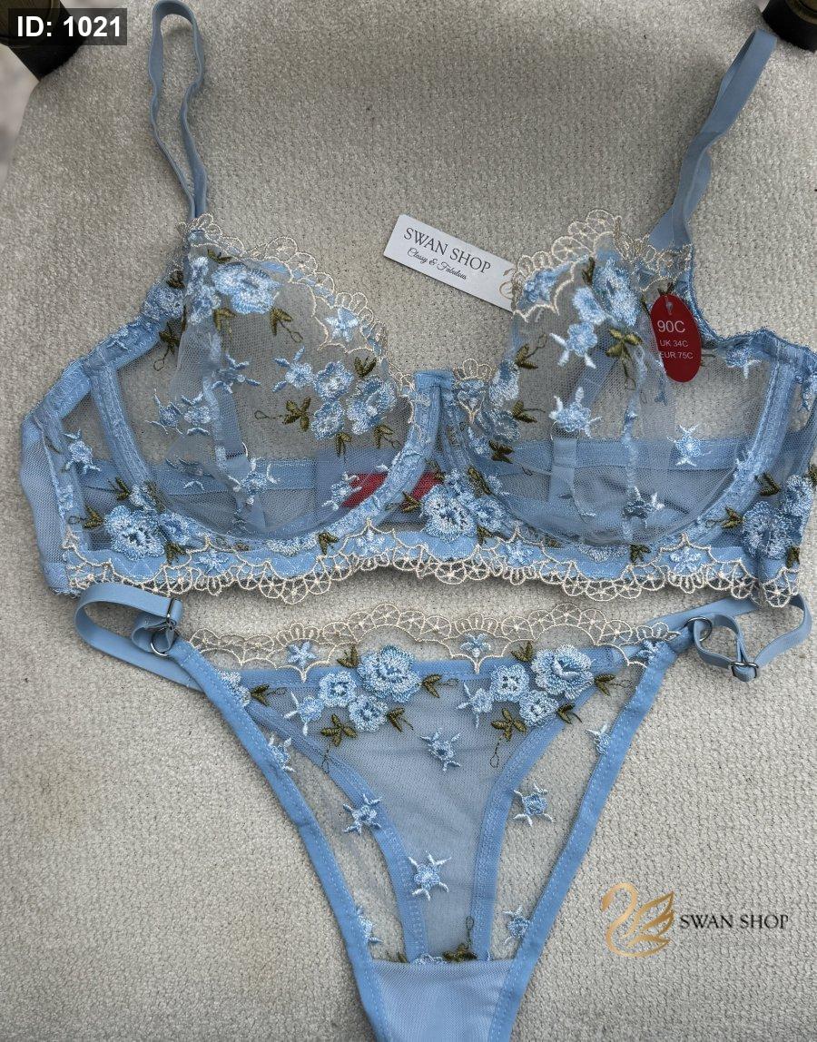 طقم لانجري مورد ازرق مقاسات كبيرة