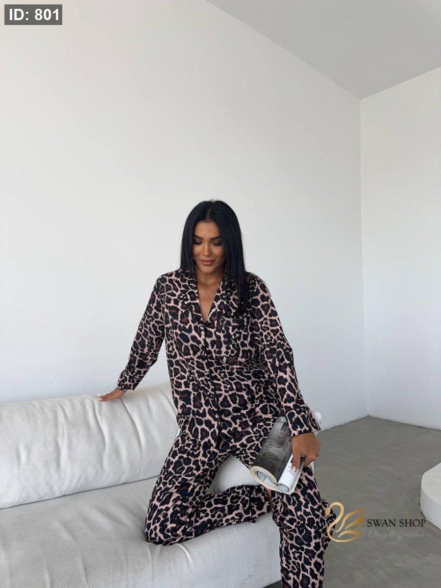تتميز بطبعة ليوبارد عصرية ولمسة أنثوية جذابة، مع قميص بأزرار وسروال مستقيم يمنحك إطلالة أنيقة حتى في أوقات الاسترخاء.