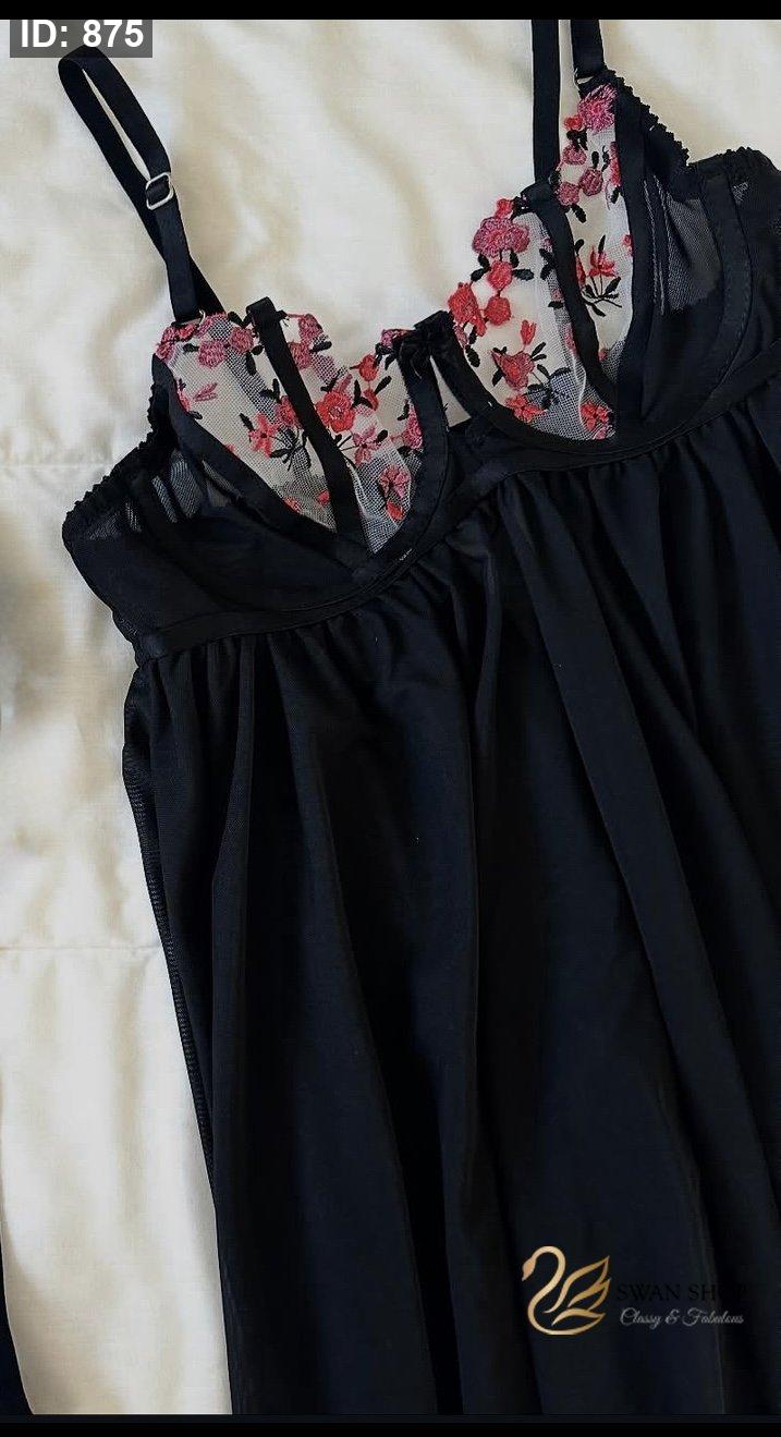 طقم لانجري قميص نوم شيفون بلون اسود فخم جريء وإطلالة مفعمة بالأنوثة.