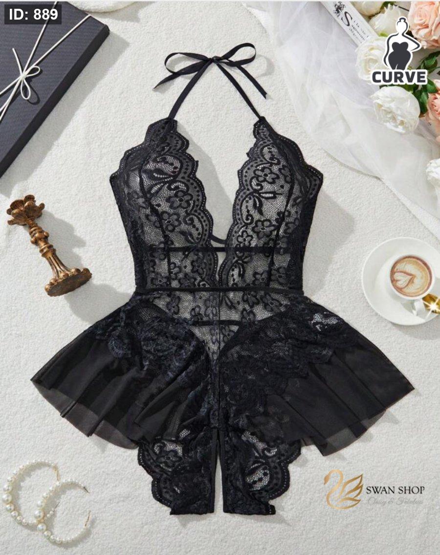 بودي دانتيل مفتوح من الاسفل مع لمسة شيفون على الافخاد