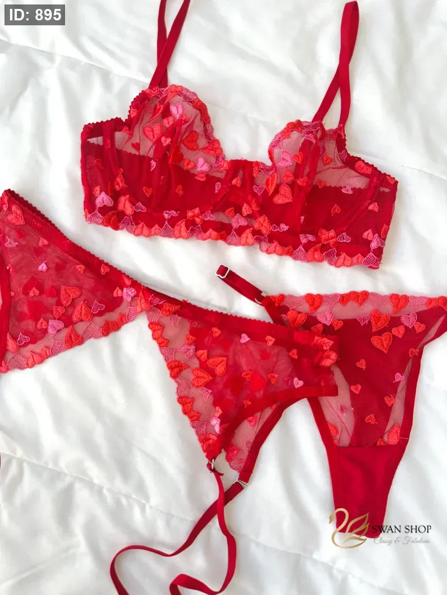 طقم بولينا ♥️ جارتير قلوب