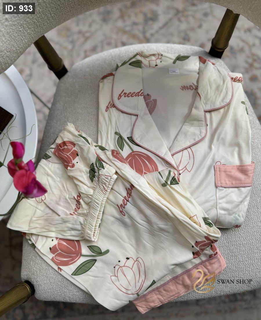 بجامه ربيعي وردات 🏵️ كم كامل و بنطلون