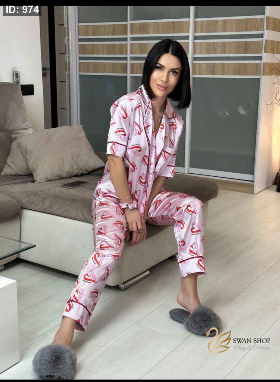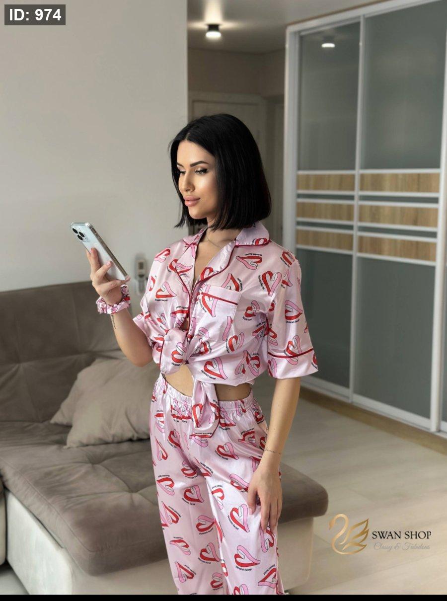 بجامة فكتوريا سيكرت نص كم وبنطلون ستان